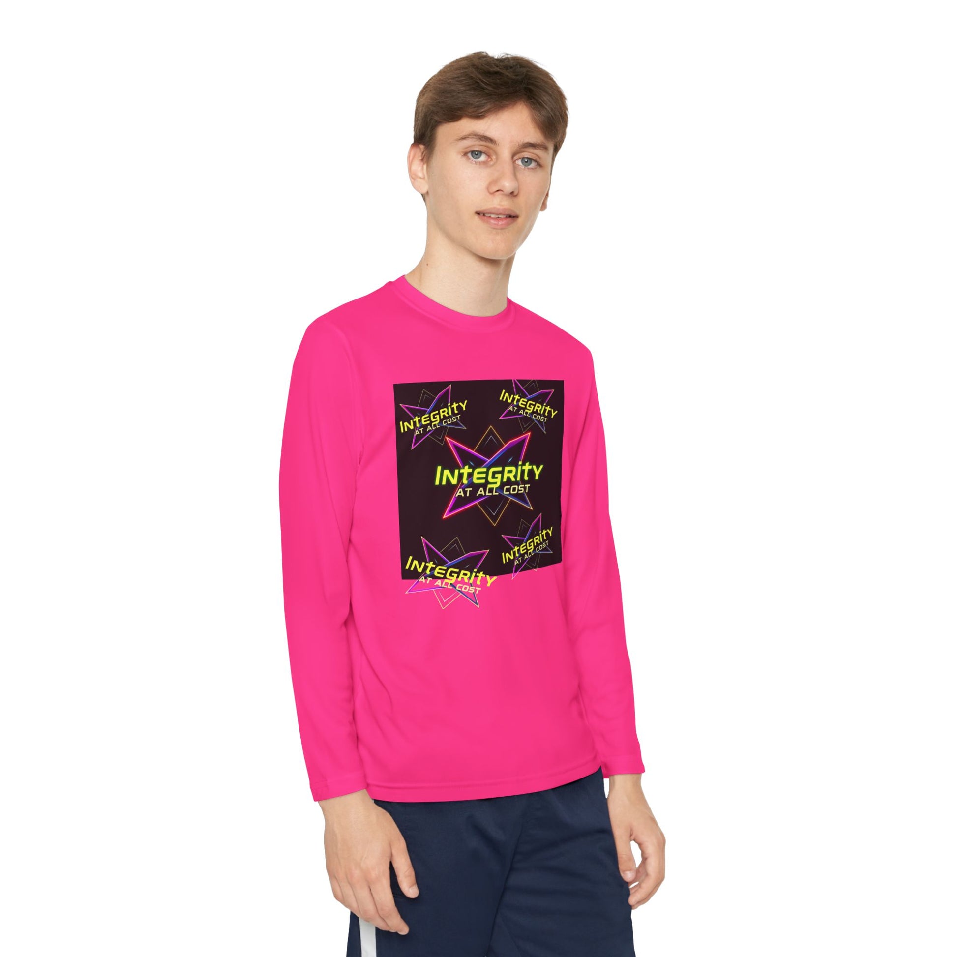 Introducing the perfect athletic companion, this Youth Long Sleeve Competitor Tee is designed for active youngsters who value both style and comfort. Made from ultra-light 100% polyester, it features a striking design that captures attention while promoting a message of integrity. Ideal for sports, school events, or casual outings, this tee is ready to keep up with any adventure. It's perfect for young athletes, teams, or anyone who wants to make a statement in their everyday wear. This versatile piece is a fantastic gift for birthdays, holidays, or any celebration where encouragement and positivity shine. Let your kids express themselves and stay comfortable while embracing their passions!