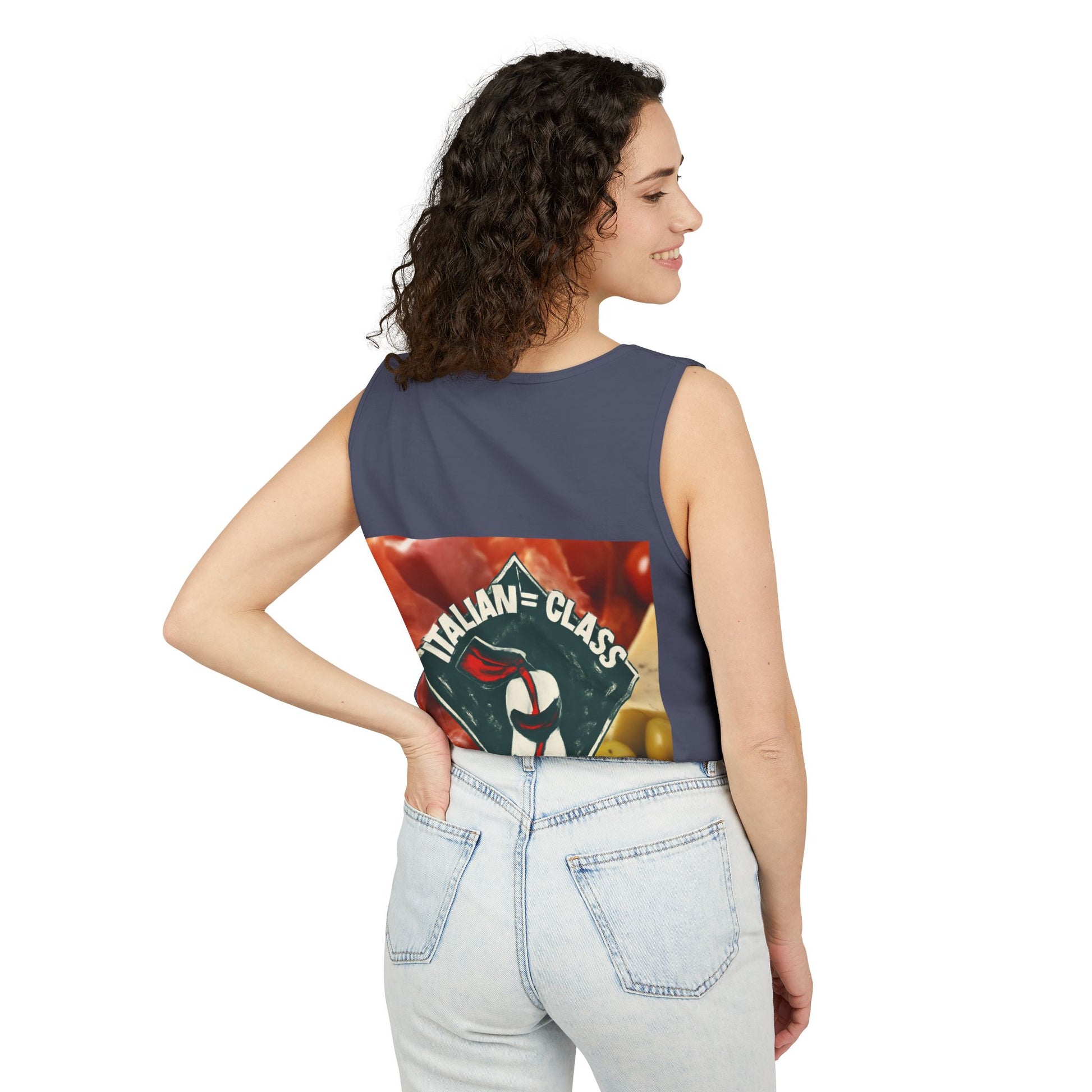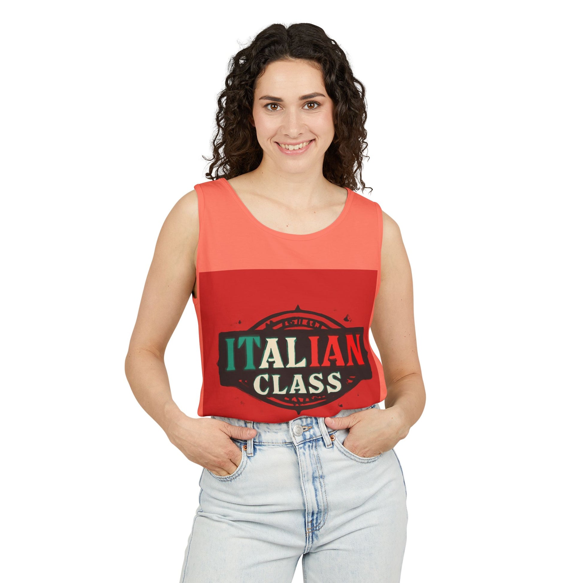 Italian Class Unisex Garment-Dyed Tank Top, Casual Summer Wear, Italian Heritage Gift, Foodie Apparel, Vacation Top