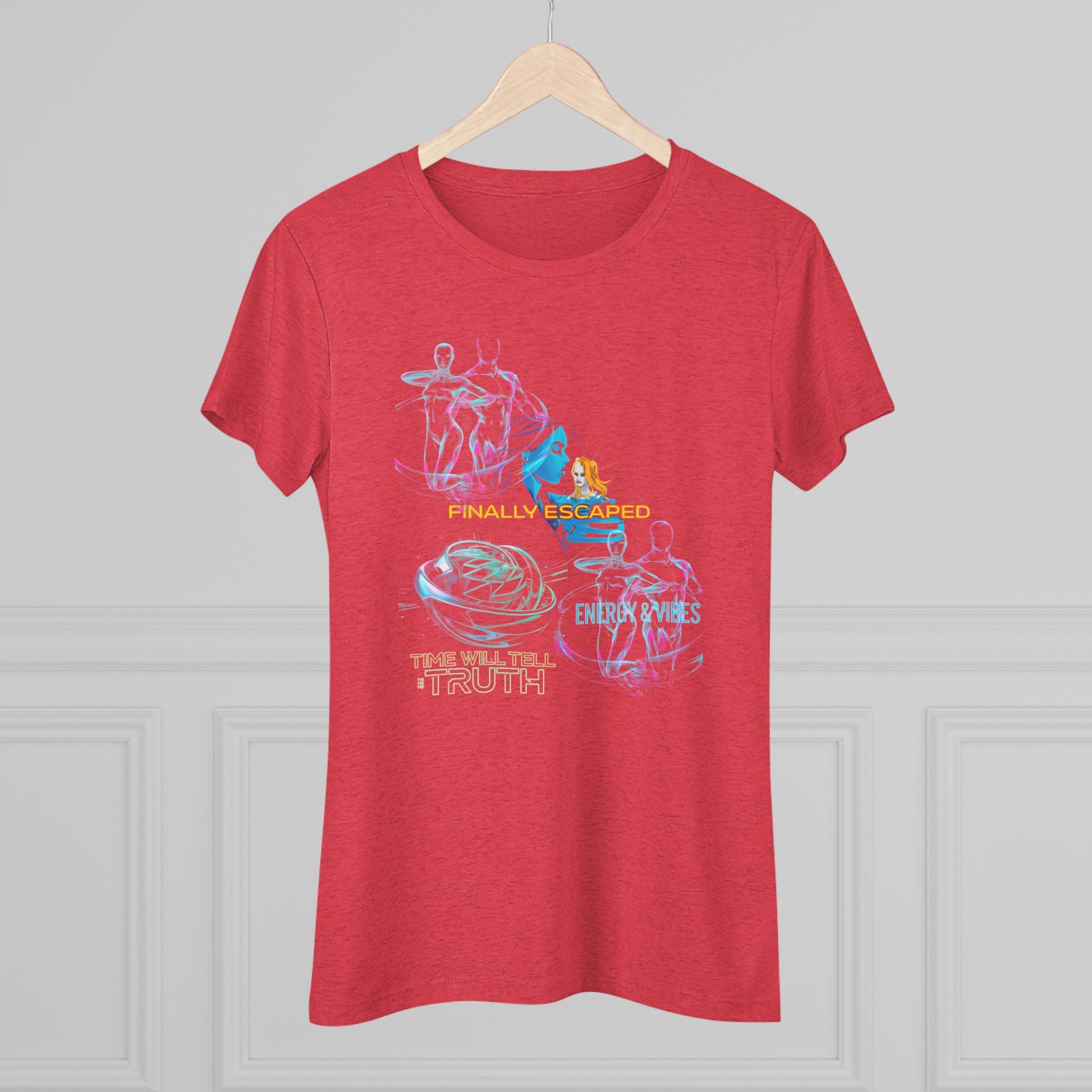 Light as a sigh and soft as a favorite memory — this slim women's triblend tee carries a playful neon-heart graphic that reads “No breadcrumbs unless on a cutlet.” It feels like slipping into an inside joke with a friend: warm, a little cheeky, and wholly confident. The drape flatters without clinging, the ribbed collar keeps its shape after wear, and the crisp neon artwork pops against the heathered fabric. Wear it on cafe dates, casual nights out, or when you want to send a quiet, witty message to the world.
