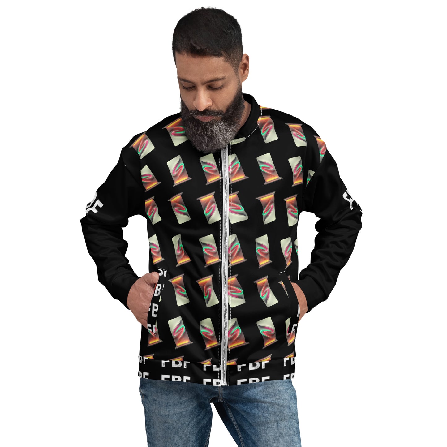 Add a little zing to your wardrobe with this vibrant All-Over Print Bomber Jacket. Wear it on a basic t-shirt, or layer it on top of a warm hoodie—it’ll look great either way. With a brushed fleece inside, and a relaxed unisex fit, this Bomber Jacket is just the stuff of the dreams, so be quick to grab yourself one!
