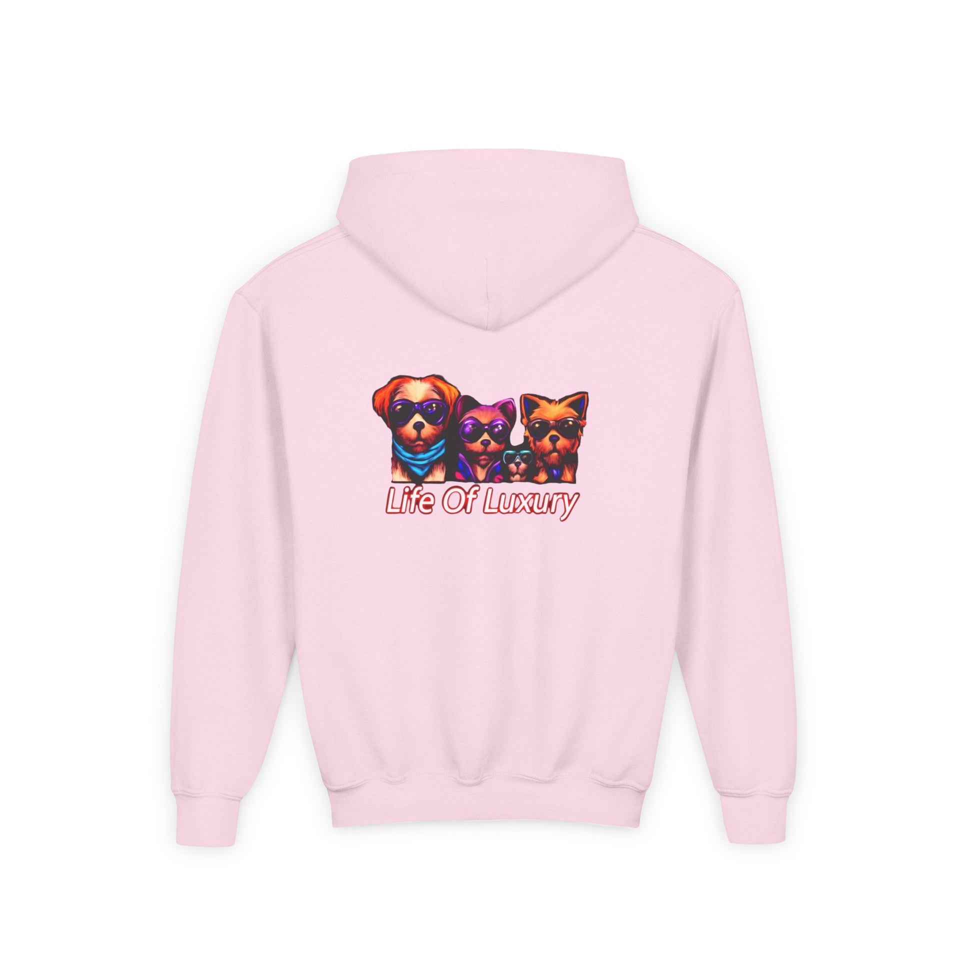 The youth blend hooded sweatshirt is made of ultra-soft, preshrunk fleece that feels wonderful against the skin. The garment is 50% cotton 50% polyester with reduced lint buildup. This makes an excellent combination for printing. The front has a kangaroo pocket big enough for both hands. The neck is reinforced with twill taping.