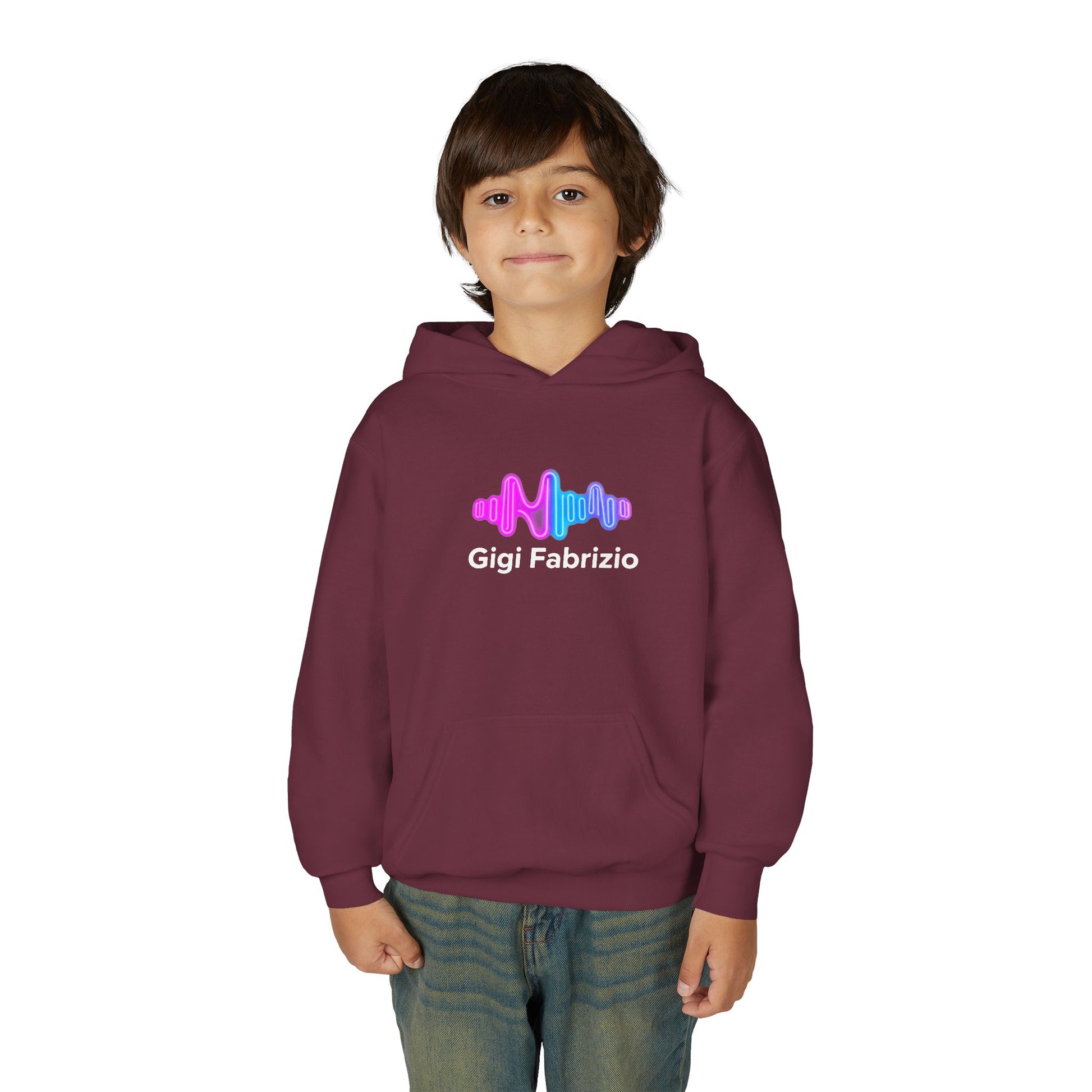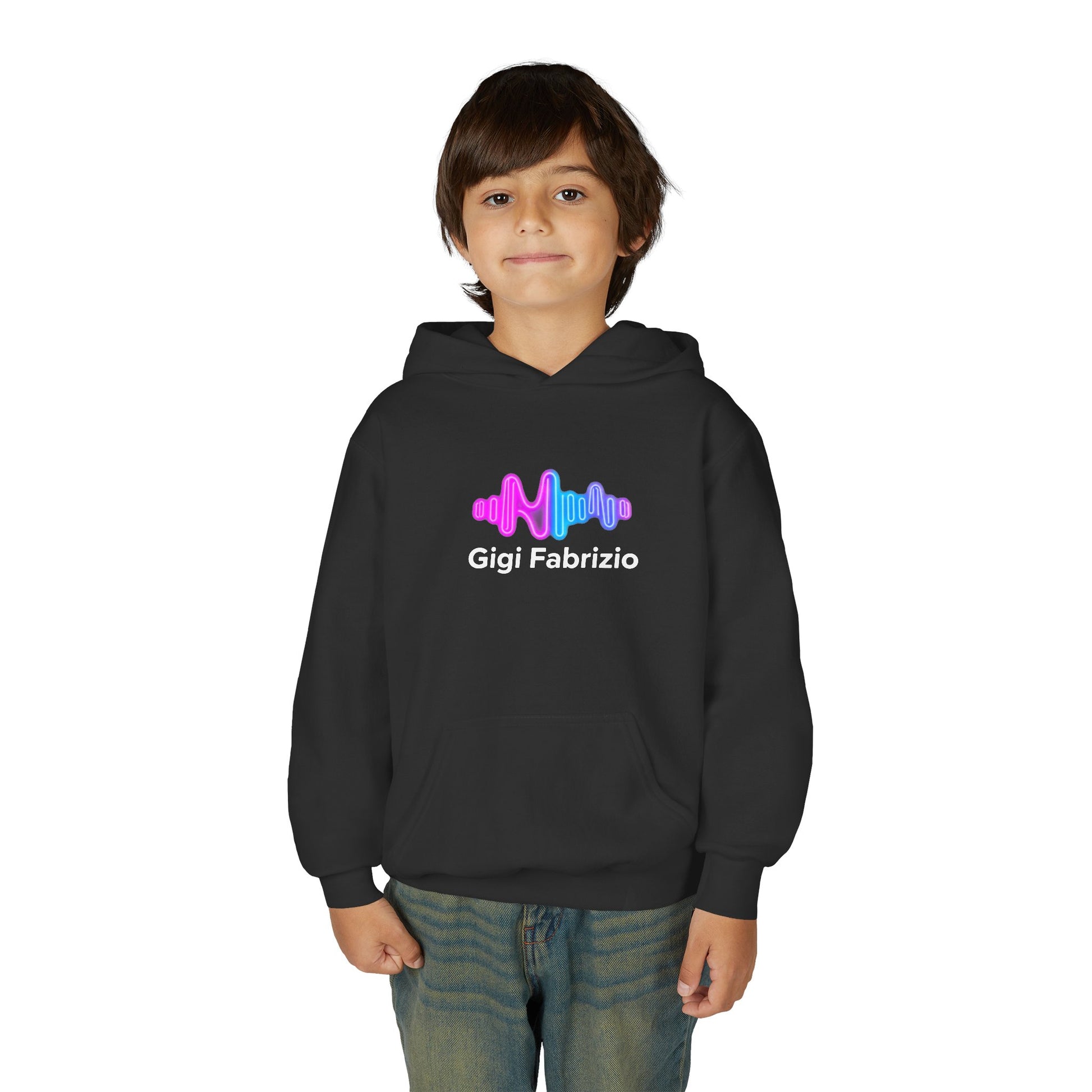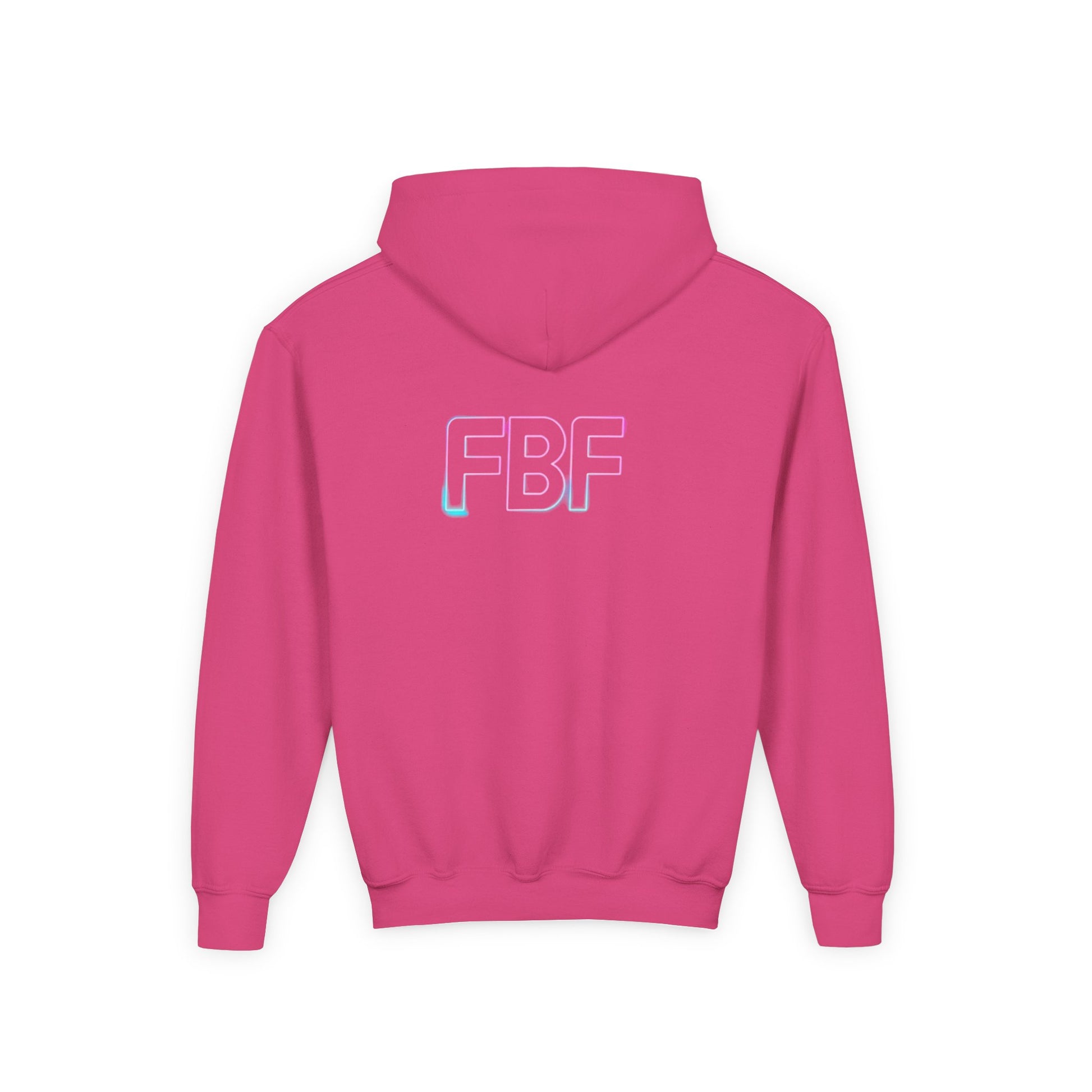 Soft, cozy, and quietly expressive — this youth hoodie wraps kids in a familiar, lived-in feel while showcasing a subtle pop of color. The front holds a small, pastel audio-wave motif that feels like a secret shared between friends. On the back, soft gradient letters read FBF in airy tones that shimmer between pink, lavender, and blue. Lightweight but warm, it layers well over tees and under jackets for school days, weekend hangouts, or long car rides. The roomy kangaroo pocket keeps hands warm and small treasures close. Built to stand up to play and washes, it keeps its shape and color so the design stays bright through seasons of wear.